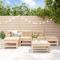 Salon de jardin 6 pcs Bois de pin massifCe salon de jardin en bois, qui se démarque par son design à lattes, sera un excellent supplément à votre jardin, patio ou terrasse pour profiter d'un moment agréable avec votre famille ou vos amis. Bois de pin massif : le bois de pin massif est un matériau naturel magnifique. Le bois de pin a un grain droit et les noeuds donnent au matériau son aspect caractéristique et rustique. Expérience d'assise confortable : le dossier ajoute un confort d'assise supplémentaire à l'ensemble de salon. Design modulaire : le canapé est flexible et facile à déplacer. Vous pouvez le combiner avec d'autres segments modulaires de la boutique en ligne pour créer vos propres configurations de salon de jardin ! Bon à savoir : Les coussins ne sont pas inclus. Pour que vos meubles d'extérieur restent beaux, nous vous recommandons de les protéger avec une housse imperméable. Maximum 110 kg par siège.