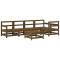 Salon de jardin 6 pcs Marron miel Bois de pin massifCe salon de jardin en bois, qui se démarque par son design à lattes, sera un excellent supplément à votre jardin, patio ou terrasse pour profiter d'un moment agréable avec votre famille ou vos amis. Bois de pin massif : le bois de pin massif est un matériau naturel magnifique. Le bois de pin a un grain droit et les noeuds donnent au matériau son aspect caractéristique et rustique.Expérience d'assise confortable : le dossier ajoute un confort d'assise supplémentaire au canapé d'extérieur.Design modulaire : le canapé est flexible et facile à déplacer. Vous pouvez le combiner avec d'autres segments modulaires de la boutique en ligne pour créer vos propres configurations de salon de jardin ! Bon à savoir :Pour que vos meubles d'extérieur restent beaux, nous vous recommandons de les protéger avec une housse imperméable.Les coussins ne sont pas inclus dans la livraison. Maximum 110 kg par siège.