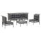 Salon de jardin 6 pcs avec coussins Gris Résine tresséeProfitez d'un moment de café confortable dans votre espace extérieur avec cet ensemble de salon de jardin ! C'est un complément parfait à votre jardin et à votre terrasse, créant une impression durable ! Matériau résistant aux intempéries : la résine tressée, également connue sous le nom de rotin poly, résiste aux intempéries et est facile à nettoyer. Elle reste belle à l'extérieur pendant une longue période. Elle offre une excellente qualité, commodité et un aspect esthétique.Cadre robuste : le cadre en acier enduit de poudre rend l'ensemble de salon d'extérieur robuste et stable pour une utilisation quotidienne à l'extérieur.Expérience d'assise confortable : les dossiers ajoutent un confort d'assise supplémentaire pour l'ensemble de salon de terrasse. De plus, les coussins bien rembourrés offrent du confort pendant votre temps d'assise.Conception modulaire : chaque article est flexible et facile à déplacer, vous pouvez donc la combiner avec d'autres segments modulaires dans la boutique en ligne pour créer vos propres configurations de salon de jardin ! Remarque :Pour que vos meubles d'extérieur restent beaux, nous vous recommandons de les protéger avec une housse imperméable. Maximum 110 kg par siège. Soyez conscient du risque de feu ouvert et d'autres sources de forte chaleur à proximité de l'appareil.