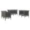 Salon de jardin 6 pcs avec coussins Gris Résine tresséeProfitez d'un moment de café confortable dans votre espace extérieur avec cet ensemble de salon de jardin ! C'est un complément parfait à votre jardin et à votre terrasse, créant une impression durable ! Matériau résistant aux intempéries : la résine tressée, également connue sous le nom de rotin poly, résiste aux intempéries et est facile à nettoyer. Elle reste belle à l'extérieur pendant une longue période. Elle offre une excellente qualité, commodité et un aspect esthétique.Cadre robuste : le cadre en acier enduit de poudre rend l'ensemble de salon d'extérieur robuste et stable pour une utilisation quotidienne à l'extérieur.Expérience d'assise confortable : les dossiers ajoutent un confort d'assise supplémentaire pour l'ensemble de salon de terrasse. De plus, les coussins bien rembourrés offrent du confort pendant votre temps d'assise.Conception modulaire : chaque article est flexible et facile à déplacer, vous pouvez donc la combiner avec d'autres segments modulaires dans la boutique en ligne pour créer vos propres configurations de salon de jardin ! Remarque :Pour que vos meubles d'extérieur restent beaux, nous vous recommandons de les protéger avec une housse imperméable. Maximum 110 kg par siège. Soyez conscient du risque de feu ouvert et d'autres sources de forte chaleur à proximité de l'appareil.