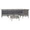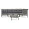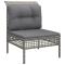 Salon de jardin 6 pcs avec coussins Gris Résine tresséeProfitez d'un moment de café confortable dans votre espace extérieur avec cet ensemble de salon de jardin ! C'est un complément parfait à votre jardin et à votre terrasse, créant une impression durable ! Matériau résistant aux intempéries : la résine tressée, également connue sous le nom de rotin poly, résiste aux intempéries et est facile à nettoyer. Elle reste belle à l'extérieur pendant une longue période. Elle offre une excellente qualité, commodité et un aspect esthétique.Cadre robuste : le cadre en acier enduit de poudre rend l'ensemble de salon d'extérieur robuste et stable pour une utilisation quotidienne à l'extérieur.Expérience d'assise confortable : les dossiers ajoutent un confort d'assise supplémentaire pour l'ensemble de salon de terrasse. De plus, les coussins bien rembourrés offrent du confort pendant votre temps d'assise.Conception modulaire : chaque article est flexible et facile à déplacer, vous pouvez donc la combiner avec d'autres segments modulaires dans la boutique en ligne pour créer vos propres configurations de salon de jardin ! Remarque :Pour que vos meubles d'extérieur restent beaux, nous vous recommandons de les protéger avec une housse imperméable. Maximum 110 kg par siège. Soyez conscient du risque de feu ouvert et d'autres sources de forte chaleur à proximité de l'appareil.