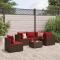 Salon de jardin 6 pcs avec coussins Marron Résine tresséeCet ensemble de salon de jardin est le complément parfait de votre arrière-cour, terrasse ou patio, offrant un espace confortable et accueillant pour discuter avec la famille et les amis ou simplement se détendre et profiter de l'extérieur. Matériau durable : la résine tressée, également connue sous le nom de poly rotin, est un matériau synthétique solide et nécessitant peu d'entretien qui ressemble au rotin naturel. Elle est légère, facile à nettoyer et couramment utilisée pour les meubles d'extérieur en raison de sa durabilité et de ses propriétés de résistance aux intempéries. Cadre robuste et stable : le cadre en acier enduit de poudre est solide, stable, durable et résistant à la corrosion et aux intempéries, ce qui garantit des performances durables. Dessus en verre : le dessus de la table d'extérieur est fabriqué en verre trempé solide et durable, ce qui le rend facile à nettoyer avec un chiffon humide et ajoute une touche d'élégance à votre espace extérieur. Conception modulaire : cet ensemble de meubles d'extérieur a une conception modulaire, ce qui le rend complètement flexible et facile à déplacer, afin que vous puissiez créer un agencement de meubles d'extérieur personnalisé. Expérience d'assise confortable : ce mobilier d'extérieur, doté de coussins épais, offre une expérience d'assise confortable. Bon à savoir : Pour que vos meubles d'extérieur restent beaux, nous vous recommandons de les protéger avec une housse imperméable. Maximum 110 kg par siège.