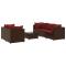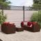 Salon de jardin 6 pcs avec coussins Marron Résine tresséeCet ensemble de salon de jardin est le complément parfait de votre arrière-cour, terrasse ou patio, offrant un espace confortable et accueillant pour discuter avec la famille et les amis ou simplement se détendre et profiter de l'extérieur. Matériau durable : la résine tressée, également connue sous le nom de poly rotin, est un matériau synthétique solide et nécessitant peu d'entretien qui ressemble au rotin naturel. Elle est légère, facile à nettoyer et couramment utilisée pour les meubles d'extérieur en raison de sa durabilité et de ses propriétés de résistance aux intempéries. Cadre robuste et stable : le cadre en acier enduit de poudre est solide, stable, durable et résistant à la corrosion et aux intempéries, ce qui garantit des performances durables. Dessus en verre : le dessus de la table d'extérieur est fabriqué en verre trempé solide et durable, ce qui le rend facile à nettoyer avec un chiffon humide et ajoute une touche d'élégance à votre espace extérieur. Conception modulaire : cet ensemble de meubles d'extérieur a une conception modulaire, ce qui le rend complètement flexible et facile à déplacer, afin que vous puissiez créer un agencement de meubles d'extérieur personnalisé. Expérience d'assise confortable : ce mobilier d'extérieur, doté de coussins épais, offre une expérience d'assise confortable. Bon à savoir : Pour que vos meubles d'extérieur restent beaux, nous vous recommandons de les protéger avec une housse imperméable. Maximum 110 kg par siège.