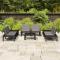 Salon de jardin 6 pcs avec coussins Plastique GrisCe salon de jardin est un excellent choix pour vous détendre et profiter du beau temps, faire une sieste ou discuter avec votre famille ou vos amis. L'ensemble de salon de jardin est en plastique, ce qui le rend facile à nettoyer et stable. Avec son dessus robuste, la table est idéale pour garder la nourriture et les boissons à portée de main. Le dossier et les coussins ajoutent au confort du banc.