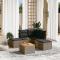 Salon de jardin 6 pcs avec coussins gris résine tresséeCet ensemble de canapés de jardin est le complément parfait de votre arrière-cour, terrasse ou patio, offrant un espace confortable et accueillant pour discuter avec la famille et les amis ou simplement se détendre et profiter de l'extérieur. Matériau durable : la résine tressée, également connue sous le nom de poly rotin, est un matériau synthétique solide et nécessitant peu d'entretien qui ressemble au rotin naturel. Il est léger, facile à nettoyer et couramment utilisé pour les meubles d'extérieur en raison de sa durabilité et de ses propriétés de résistance aux intempéries.Fonction de rangement avec sac résistant à l'eau : chaque siège de jardin dispose d'un espace de rangement sous l'assise, complété par un sac résistant à l'eau pour ranger les coussins, les jouets et d'autres objets. Les sacs intérieurs sont dotés d'un couvercle et peuvent être solidement fixés aux sièges à l'aide de bandes auto-agrippantes pour plus de stabilité.Dessus stable et facile à nettoyer : cette table de jardin a un dessus en bois d'acacia robuste, durable et facile à nettoyer avec un chiffon humide.Pouf polyvalent : le tabouret est polyvalent, servant de repose-pieds confortable lorsque vous vous prélassez sur le canapé ou de siège supplémentaire dans votre jardin.Conception modulaire : cet ensemble de meubles d'extérieur a une conception modulaire, ce qui le rend complètement flexible et facile à déplacer, afin que vous puissiez créer un agencement de meubles d'extérieur personnalisé. Bon à savoir :Pour que vos meubles d'extérieur restent beaux, nous vous recommandons de les protéger avec une housse imperméable.