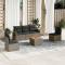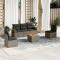 Salon de jardin 6 pcs avec coussins gris résine tresséeCet ensemble de canapés de jardin est le complément parfait de votre arrière-cour, terrasse ou patio, offrant un espace confortable et accueillant pour discuter avec la famille et les amis ou simplement se détendre et profiter de l'extérieur. Matériau durable : la résine tressée, également connue sous le nom de poly rotin, est un matériau synthétique solide et nécessitant peu d'entretien qui ressemble au rotin naturel. Il est léger, facile à nettoyer et couramment utilisé pour les meubles d'extérieur en raison de sa durabilité et de ses propriétés de résistance aux intempéries.Fonction de rangement avec sac résistant à l'eau : chaque siège de jardin dispose d'un espace de rangement sous l'assise, complété par un sac résistant à l'eau pour ranger les coussins, les jouets et d'autres objets. Les sacs intérieurs sont dotés d'un couvercle et peuvent être solidement fixés aux sièges à l'aide de bandes auto-agrippantes pour plus de stabilité.Dessus stable et facile à nettoyer : cette table de jardin a un dessus en bois d'acacia robuste, durable et facile à nettoyer avec un chiffon humide.Table d'appoint pratique : ce mobilier d'extérieur comprend des tables d'appoint pliables avec un ressort à gaz sur les accoudoirs, offrant des endroits pratiques pour garder vos essentiels à portée de main.Conception modulaire : cet ensemble de meubles d'extérieur a une conception modulaire, ce qui le rend complètement flexible et facile à déplacer, afin que vous puissiez créer un agencement de meubles d'extérieur personnalisé. Bon à savoir :Pour que vos meubles d'extérieur restent beaux, nous vous recommandons de les protéger avec une housse imperméable.