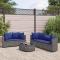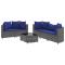 Salon de jardin 6 pcs avec coussins gris résine tresséeCet ensemble de canapés de jardin est le complément parfait de votre arrière-cour, terrasse ou patio, offrant un espace confortable et accueillant pour discuter avec la famille et les amis ou simplement se détendre et profiter de l'extérieur. Matériau durable : la résine tressée, également connue sous le nom de poly rotin, est un matériau synthétique solide et nécessitant peu d'entretien qui ressemble au rotin naturel. Elle est légère, facile à nettoyer et couramment utilisée pour les meubles d'extérieur en raison de sa durabilité et de ses propriétés de résistance aux intempéries.Cadre robuste et stable : le cadre en acier enduit de poudre est solide, stable, durable et résistant à la corrosion et aux intempéries, ce qui garantit des performances durables.Conception modulaire : cet ensemble de meubles d'extérieur a une conception modulaire, ce qui le rend complètement flexible et facile à déplacer, afin que vous puissiez créer un agencement de meubles d'extérieur personnalisé.Expérience d'assise confortable : ce mobilier d'extérieur, doté de coussins épais, offre une expérience d'assise confortable.Dessus en verre : le dessus de la table d'extérieur est fabriqué en verre trempé solide et durable, ce qui le rend facile à nettoyer avec un chiffon humide et ajoute une touche d'élégance à votre espace extérieur. Bon à savoir :Pour que vos meubles d'extérieur restent beaux, nous vous recommandons de les protéger avec une housse imperméable. Maximum 110 kg par siège.