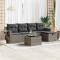 Salon de jardin 6 pcs avec coussins gris résine tresséeCet ensemble de canapés de jardin est le complément parfait de votre arrière-cour, terrasse ou patio, offrant un espace confortable et accueillant pour discuter avec la famille et les amis ou simplement se détendre et profiter de l'extérieur. Matériau durable : la résine tressée, également connue sous le nom de poly rotin, est un matériau synthétique solide et nécessitant peu d'entretien qui ressemble au rotin naturel. Elle est légère, facile à nettoyer et couramment utilisée pour les meubles d'extérieur en raison de sa durabilité et de ses propriétés de résistance aux intempéries.Fonction de rangement avec sac résistant à l'eau : le mobilier de jardin dispose d'un espace de rangement sous l'assise, complété par un sac résistant à l'eau pour ranger coussins, jouets et autres objets. Le sac intérieur peut être solidement fixé au mobilier d'extérieur grâce à des attaches auto-agrippantes pour plus de stabilité.Pouf polyvalent : le tabouret est polyvalent, servant de repose-pieds confortable lorsque vous vous prélassez sur le canapé ou de siège supplémentaire dans votre jardin.Housse amovible et lavable : ces coussins de siège sont dotés de housses amovibles pour un lavage et un entretien faciles.Conception modulaire : cet ensemble de meubles d'extérieur a une conception modulaire, ce qui le rend complètement flexible et facile à déplacer, afin que vous puissiez créer un agencement de meubles d'extérieur personnalisé. Bon à savoir :Pour que vos meubles d'extérieur restent beaux, nous vous recommandons de les protéger avec une housse imperméable.
