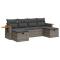 Salon de jardin 6 pcs avec coussins gris résine tresséeCet ensemble de canapés de jardin est le complément parfait de votre arrière-cour, terrasse ou patio, offrant un espace confortable et accueillant pour discuter avec la famille et les amis ou simplement se détendre et profiter de l'extérieur. Matériau durable : la résine tressée, également connue sous le nom de poly rotin, est un matériau synthétique solide et nécessitant peu d'entretien qui ressemble au rotin naturel. Elle est légère, facile à nettoyer et couramment utilisée pour les meubles d'extérieur en raison de sa durabilité et de ses propriétés de résistance aux intempéries.Fonction de rangement avec sac résistant à l'eau : chaque siège de jardin dispose d'un espace de rangement sous l'assise, complété par un sac résistant à l'eau pour ranger les coussins, les jouets et d'autres objets. Le sac intérieur est doté d'un couvercle et peut être solidement fixé au siège à l'aide de bandes auto-agrippantes pour plus de stabilité.Pouf polyvalent : le tabouret est polyvalent, servant de repose-pieds confortable lorsque vous vous prélassez sur le canapé ou de siège supplémentaire dans votre jardin.Housse amovible et lavable : ces coussins de siège sont dotés de housses amovibles pour un lavage et un entretien faciles.Cadre robuste et stable : le cadre en acier enduit de poudre est solide, stable, durable et résistant à la corrosion et aux intempéries, ce qui garantit des performances durables. Bon à savoir :Pour que vos meubles d'extérieur restent beaux, nous vous recommandons de les protéger avec une housse imperméable.