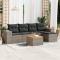 Salon de jardin 6 pcs avec coussins gris résine tresséeCet ensemble de canapés de jardin est le complément parfait de votre arrière-cour, terrasse ou patio, offrant un espace confortable et accueillant pour discuter avec la famille et les amis ou simplement se détendre et profiter de l'extérieur. Matériau durable : la résine tressée, également connue sous le nom de poly rotin, est un matériau synthétique solide et nécessitant peu d'entretien qui ressemble au rotin naturel. Il est léger, facile à nettoyer et couramment utilisé pour les meubles d'extérieur en raison de sa durabilité et de ses propriétés de résistance aux intempéries.Dessus stable et facile à nettoyer : cette table de jardin a un dessus en bois d'acacia robuste, durable et facile à nettoyer avec un chiffon humide. Fonction de rangement avec sac résistant à l'eau : chaque siège de jardin dispose d'un espace de rangement sous l'assise, complété par un sac résistant à l'eau pour ranger les coussins, les jouets et d'autres objets. Les sacs intérieurs sont dotés d'un couvercle et peuvent être solidement fixés aux sièges à l'aide de bandes auto-agrippantes pour plus de stabilité.Expérience d'assise confortable : ce mobilier d'extérieur, doté de coussins épais, offre une expérience d'assise confortable.Conception modulaire : cet ensemble de meubles d'extérieur a une conception modulaire, ce qui le rend complètement flexible et facile à déplacer, afin que vous puissiez créer un agencement de meubles d'extérieur personnalisé. Bon à savoir :Pour que vos meubles d'extérieur restent beaux, nous vous recommandons de les protéger avec une housse imperméable.