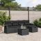 Salon de jardin 6 pcs avec coussins noir résine tresséeCet ensemble de canapés de jardin est le complément parfait de votre arrière-cour, terrasse ou patio, offrant un espace confortable et accueillant pour discuter avec la famille et les amis ou simplement se détendre et profiter de l'extérieur. Matériau durable : la résine tressée, également connue sous le nom de poly rotin, est un matériau synthétique solide et nécessitant peu d'entretien qui ressemble au rotin naturel. Il est léger, facile à nettoyer et couramment utilisé pour les meubles d'extérieur en raison de sa durabilité et de ses propriétés de résistance aux intempéries.Dessus en verre : le dessus de la table d'extérieur est fabriqué en verre trempé solide et durable, ce qui le rend facile à nettoyer avec un chiffon humide et ajoute une touche d'élégance à votre espace extérieur.Housse amovible et lavable : ces coussins de siège sont dotés de housses amovibles pour un lavage et un entretien faciles.Cadre robuste et stable : le cadre en acier enduit de poudre assure la solidité et la stabilité du meuble de jardin pour une utilisation quotidienne à l'extérieur.Conception modulaire : cet ensemble de meubles d'extérieur a une conception modulaire, ce qui le rend complètement flexible et facile à déplacer, afin que vous puissiez créer un agencement de meubles d'extérieur personnalisé. Bon à savoir :Pour que vos meubles d'extérieur restent beaux, nous vous recommandons de les protéger avec une housse imperméable.