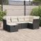 Salon de jardin 6 pcs avec coussins noir résine tresséeCet ensemble de canapés de jardin est le complément parfait de votre arrière-cour, terrasse ou patio, offrant un espace confortable et accueillant pour discuter avec la famille et les amis ou simplement se détendre et profiter de l'extérieur. Matériau durable : la résine tressée, également connue sous le nom de poly rotin, est un matériau synthétique solide et nécessitant peu d'entretien qui ressemble au rotin naturel. Elle est légère, facile à nettoyer et couramment utilisée pour les meubles d'extérieur en raison de sa durabilité et de ses propriétés de résistance aux intempéries.Fonction de rangement avec sac résistant à l'eau : le mobilier de jardin dispose d'un espace de rangement sous l'assise, complété par un sac résistant à l'eau pour ranger coussins, jouets et autres objets. Le sac intérieur peut être solidement fixé au mobilier d'extérieur grâce à des attaches auto-agrippantes pour plus de stabilité.Pouf polyvalent : le tabouret est polyvalent, servant de repose-pieds confortable lorsque vous vous prélassez sur le canapé ou de siège supplémentaire dans votre jardin.Housse amovible et lavable : ces coussins de siège sont dotés de housses amovibles pour un lavage et un entretien faciles.Conception modulaire : cet ensemble de meubles d'extérieur a une conception modulaire, ce qui le rend complètement flexible et facile à déplacer, afin que vous puissiez créer un agencement de meubles d'extérieur personnalisé. Bon à savoir :Pour que vos meubles d'extérieur restent beaux, nous vous recommandons de les protéger avec une housse imperméable.