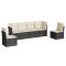 Salon de jardin 6 pcs avec coussins noir résine tresséeCet ensemble de canapés de jardin est le complément parfait de votre arrière-cour, terrasse ou patio, offrant un espace confortable et accueillant pour discuter avec la famille et les amis ou simplement se détendre et profiter de l'extérieur. Matériau durable : la résine tressée, également connue sous le nom de poly rotin, est un matériau synthétique solide et nécessitant peu d'entretien qui ressemble au rotin naturel. Il est léger, facile à nettoyer et couramment utilisé pour les meubles d'extérieur en raison de sa durabilité et de ses propriétés de résistance aux intempéries.Fonction de rangement avec sac résistant à l'eau : chaque siège de jardin dispose d'un espace de rangement sous l'assise, complété par un sac résistant à l'eau pour ranger les coussins, les jouets et d'autres objets. Les sacs intérieurs sont dotés d'un couvercle et peuvent être solidement fixés aux sièges à l'aide de bandes auto-agrippantes pour plus de stabilité.Housse amovible et lavable : ces coussins de siège sont dotés de housses amovibles pour un lavage et un entretien faciles.Conception modulaire : cet ensemble de meubles d'extérieur a une conception modulaire, ce qui le rend complètement flexible et facile à déplacer, afin que vous puissiez créer un agencement de meubles d'extérieur personnalisé. Bon à savoir :Pour que vos meubles d'extérieur restent beaux, nous vous recommandons de les protéger avec une housse imperméable.