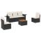 Salon de jardin 6 pcs avec coussins noir résine tresséeCet ensemble de canapés de jardin est le complément parfait de votre arrière-cour, terrasse ou patio, offrant un espace confortable et accueillant pour discuter avec la famille et les amis ou simplement se détendre et profiter de l'extérieur. Matériau durable : la résine tressée, également connue sous le nom de poly rotin, est un matériau synthétique solide et nécessitant peu d'entretien qui ressemble au rotin naturel. Il est léger, facile à nettoyer et couramment utilisé pour les meubles d'extérieur en raison de sa durabilité et de ses propriétés de résistance aux intempéries.Fonction de rangement avec sac résistant à l'eau : chaque siège de jardin dispose d'un espace de rangement sous l'assise, complété par un sac résistant à l'eau pour ranger les coussins, les jouets et d'autres objets. Les sacs intérieurs sont dotés d'un couvercle et peuvent être solidement fixés aux sièges à l'aide de bandes auto-agrippantes pour plus de stabilité.Dessus stable et facile à nettoyer : cette table de jardin a un dessus en bois d'acacia robuste, durable et facile à nettoyer avec un chiffon humide.Table d'appoint pratique : ce mobilier d'extérieur comprend des tables d'appoint pliables avec un ressort à gaz sur les accoudoirs, offrant des endroits pratiques pour garder vos essentiels à portée de main.Conception modulaire : cet ensemble de meubles d'extérieur a une conception modulaire, ce qui le rend complètement flexible et facile à déplacer, afin que vous puissiez créer un agencement de meubles d'extérieur personnalisé. Bon à savoir :Pour que vos meubles d'extérieur restent beaux, nous vous recommandons de les protéger avec une housse imperméable.