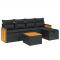 Salon de jardin 6 pcs avec coussins noir résine tresséeCet ensemble de canapés de jardin est le complément parfait de votre arrière-cour, terrasse ou patio, offrant un espace confortable et accueillant pour discuter avec la famille et les amis ou simplement se détendre et profiter de l'extérieur. Matériau durable : la résine tressée, également connue sous le nom de poly rotin, est un matériau synthétique solide et nécessitant peu d'entretien qui ressemble au rotin naturel. Il est léger, facile à nettoyer et couramment utilisé pour les meubles d'extérieur en raison de sa durabilité et de ses propriétés de résistance aux intempéries.Dessus stable et facile à nettoyer : cette table de jardin a un dessus en bois d'acacia robuste, durable et facile à nettoyer avec un chiffon humide.Housse amovible et lavable : ces coussins de siège sont dotés de housses amovibles pour un lavage et un entretien faciles.Cadre robuste et stable : le cadre en acier enduit de poudre assure la solidité et la stabilité du meuble de jardin pour une utilisation quotidienne à l'extérieur.Conception modulaire : cet ensemble de meubles d'extérieur a une conception modulaire, ce qui le rend complètement flexible et facile à déplacer, afin que vous puissiez créer un agencement de meubles d'extérieur personnalisé. Bon à savoir :Pour que vos meubles d'extérieur restent beaux, nous vous recommandons de les protéger avec une housse imperméable.