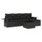 Salon de jardin 6 pcs avec coussins noir résine tresséeCet ensemble de canapés de jardin est le complément parfait de votre arrière-cour, terrasse ou patio, offrant un espace confortable et accueillant pour discuter avec la famille et les amis ou simplement se détendre et profiter de l'extérieur. Matériau durable : la résine tressée, également connue sous le nom de poly rotin, est un matériau synthétique solide et nécessitant peu d'entretien qui ressemble au rotin naturel. Il est léger, facile à nettoyer et couramment utilisé pour les meubles d'extérieur en raison de sa durabilité et de ses propriétés de résistance aux intempéries.Dessus en verre : le dessus de la table d'extérieur est fabriqué en verre trempé solide et durable, ce qui le rend facile à nettoyer avec un chiffon humide et ajoute une touche d'élégance à votre espace extérieur. Table d'appoint pratique : ce mobilier d'extérieur comprend des tables d'appoint pliables avec un ressort à gaz sur les accoudoirs, offrant des endroits pratiques pour garder vos essentiels à portée de main. Expérience d'assise confortable : ce mobilier d'extérieur, doté de coussins épais, offre une expérience d'assise confortable.Conception modulaire : cet ensemble de meubles d'extérieur a une conception modulaire, ce qui le rend complètement flexible et facile à déplacer, afin que vous puissiez créer un agencement de meubles d'extérieur personnalisé. Bon à savoir :Pour que vos meubles d'extérieur restent beaux, nous vous recommandons de les protéger avec une housse imperméable.