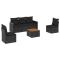 Salon de jardin 6 pcs avec coussins noir résine tresséeCet ensemble de canapés de jardin est le complément parfait de votre arrière-cour, terrasse ou patio, offrant un espace confortable et accueillant pour discuter avec la famille et les amis ou simplement se détendre et profiter de l'extérieur. Matériau durable : la résine tressée, également connue sous le nom de poly rotin, est un matériau synthétique solide et nécessitant peu d'entretien qui ressemble au rotin naturel. Il est léger, facile à nettoyer et couramment utilisé pour les meubles d'extérieur en raison de sa durabilité et de ses propriétés de résistance aux intempéries.Fonction de rangement avec sac résistant à l'eau : le mobilier de jardin dispose d'un espace de rangement sous l'assise, complété par un sac résistant à l'eau pour ranger coussins, jouets et autres objets. Le sac intérieur peut être solidement fixé au mobilier d'extérieur grâce à des attaches auto-agrippantes pour plus de stabilité.Dessus stable et facile à nettoyer : cette table de jardin a un dessus en bois d'acacia robuste, durable et facile à nettoyer avec un chiffon humide.Housse amovible et lavable : ces coussins de siège sont dotés de housses amovibles pour un lavage et un entretien faciles.Conception modulaire : cet ensemble de meubles d'extérieur a une conception modulaire, ce qui le rend complètement flexible et facile à déplacer, afin que vous puissiez créer un agencement de meubles d'extérieur personnalisé. Bon à savoir :Pour que vos meubles d'extérieur restent beaux, nous vous recommandons de les protéger avec une housse imperméable.