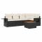 Salon de jardin 6 pcs avec coussins noir résine tresséeCet ensemble de canapés de jardin est le complément parfait de votre arrière-cour, terrasse ou patio, offrant un espace confortable et accueillant pour discuter avec la famille et les amis ou simplement se détendre et profiter de l'extérieur. Matériau durable : la résine tressée, également connue sous le nom de poly rotin, est un matériau synthétique solide et nécessitant peu d'entretien qui ressemble au rotin naturel. Il est léger, facile à nettoyer et couramment utilisé pour les meubles d'extérieur en raison de sa durabilité et de ses propriétés de résistance aux intempéries.Fonction de rangement avec sac résistant à l'eau : chaque siège de jardin dispose d'un espace de rangement sous l'assise, complété par un sac résistant à l'eau pour ranger les coussins, les jouets et d'autres objets. Les sacs intérieurs sont dotés d'un couvercle et peuvent être solidement fixés aux sièges à l'aide de bandes auto-agrippantes pour plus de stabilité.Dessus stable et facile à nettoyer : cette table de jardin a un dessus en bois d'acacia robuste, durable et facile à nettoyer avec un chiffon humide.Table d'appoint pratique : ce mobilier d'extérieur comprend des tables d'appoint pliables avec un ressort à gaz sur les accoudoirs, offrant des endroits pratiques pour garder vos essentiels à portée de main.Conception modulaire : cet ensemble de meubles d'extérieur a une conception modulaire, ce qui le rend complètement flexible et facile à déplacer, afin que vous puissiez créer un agencement de meubles d'extérieur personnalisé. Bon à savoir :Pour que vos meubles d'extérieur restent beaux, nous vous recommandons de les protéger avec une housse imperméable.