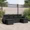 Salon de jardin 6 pcs avec coussins noir résine tresséeCet ensemble de canapés de jardin est le complément parfait de votre arrière-cour, terrasse ou patio, offrant un espace confortable et accueillant pour discuter avec la famille et les amis ou simplement se détendre et profiter de l'extérieur. Matériau durable : la résine tressée, également connue sous le nom de poly rotin, est un matériau synthétique solide et nécessitant peu d'entretien qui ressemble au rotin naturel. Il est léger, facile à nettoyer et couramment utilisé pour les meubles d'extérieur en raison de sa durabilité et de ses propriétés de résistance aux intempéries.Fonction de rangement avec sac résistant à l'eau : chaque siège de jardin dispose d'un espace de rangement sous l'assise, complété par un sac résistant à l'eau pour ranger les coussins, les jouets et d'autres objets. Les sacs intérieurs sont dotés d'un couvercle et peuvent être solidement fixés aux sièges à l'aide de bandes auto-agrippantes pour plus de stabilité.Housse amovible et lavable : ces coussins de siège sont dotés de housses amovibles pour un lavage et un entretien faciles.Conception modulaire : cet ensemble de meubles d'extérieur a une conception modulaire, ce qui le rend complètement flexible et facile à déplacer, afin que vous puissiez créer un agencement de meubles d'extérieur personnalisé. Bon à savoir :Pour que vos meubles d'extérieur restent beaux, nous vous recommandons de les protéger avec une housse imperméable.
