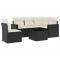 Salon de jardin 6 pcs avec coussins noir résine tresséeCet ensemble de canapés de jardin est le complément parfait de votre arrière-cour, terrasse ou patio, offrant un espace confortable et accueillant pour discuter avec la famille et les amis ou simplement se détendre et profiter de l'extérieur. Matériau durable : la résine tressée, également connue sous le nom de poly rotin, est un matériau synthétique solide et nécessitant peu d'entretien qui ressemble au rotin naturel. Il est léger, facile à nettoyer et couramment utilisé pour les meubles d'extérieur en raison de sa durabilité et de ses propriétés de résistance aux intempéries.Expérience d'assise confortable : ce mobilier d'extérieur, doté de coussins épais, offre une expérience d'assise confortable. Les larges accoudoirs offrent également un endroit pratique pour garder votre téléphone portable, vos tasses ou d'autres petits objets à portée de main.Housse amovible et lavable : ces coussins de siège sont dotés de housses amovibles pour un lavage et un entretien faciles.Dessus en verre : le dessus de la table d'extérieur est fabriqué en verre trempé solide et durable, ce qui le rend facile à nettoyer avec un chiffon humide et ajoute une touche d'élégance à votre espace extérieur.Conception modulaire : cet ensemble de meubles d'extérieur a une conception modulaire, ce qui le rend complètement flexible et facile à déplacer, afin que vous puissiez créer un agencement de meubles d'extérieur personnalisé. Bon à savoir :Pour que vos meubles d'extérieur restent beaux, nous vous recommandons de les protéger avec une housse imperméable.