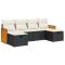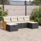Salon de jardin 6 pcs avec coussins noir résine tresséeCet ensemble de canapés de jardin est le complément parfait de votre arrière-cour, terrasse ou patio, offrant un espace confortable et accueillant pour discuter avec la famille et les amis ou simplement se détendre et profiter de l'extérieur. Matériau durable : la résine tressée, également connue sous le nom de poly rotin, est un matériau synthétique solide et nécessitant peu d'entretien qui ressemble au rotin naturel. Elle est légère, facile à nettoyer et couramment utilisée pour les meubles d'extérieur en raison de sa durabilité et de ses propriétés de résistance aux intempéries.Fonction de rangement avec sac résistant à l'eau : chaque siège de jardin dispose d'un espace de rangement sous l'assise, complété par un sac résistant à l'eau pour ranger les coussins, les jouets et d'autres objets. Le sac intérieur est doté d'un couvercle et peut être solidement fixé au siège à l'aide de bandes auto-agrippantes pour plus de stabilité.Pouf polyvalent : le tabouret est polyvalent, servant de repose-pieds confortable lorsque vous vous prélassez sur le canapé ou de siège supplémentaire dans votre jardin.Housse amovible et lavable : ces coussins de siège sont dotés de housses amovibles pour un lavage et un entretien faciles.Cadre robuste et stable : le cadre en acier enduit de poudre est solide, stable, durable et résistant à la corrosion et aux intempéries, ce qui garantit des performances durables. Bon à savoir :Pour que vos meubles d'extérieur restent beaux, nous vous recommandons de les protéger avec une housse imperméable.