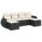 Salon de jardin 6 pcs avec coussins noir résine tresséeCet ensemble de canapés de jardin est le complément parfait de votre arrière-cour, terrasse ou patio, offrant un espace confortable et accueillant pour discuter avec la famille et les amis ou simplement se détendre et profiter de l'extérieur. Matériau durable : la résine tressée, également connue sous le nom de poly rotin, est un matériau synthétique solide et nécessitant peu d'entretien qui ressemble au rotin naturel. Elle est légère, facile à nettoyer et couramment utilisée pour les meubles d'extérieur en raison de sa durabilité et de ses propriétés de résistance aux intempéries.Fonction de rangement avec sac résistant à l'eau : le mobilier de jardin dispose d'un espace de rangement sous l'assise, complété par un sac résistant à l'eau pour ranger coussins, jouets et autres objets. Le sac intérieur peut être solidement fixé au mobilier d'extérieur grâce à des attaches auto-agrippantes pour plus de stabilité.Pouf polyvalent : le tabouret est polyvalent, servant de repose-pieds confortable lorsque vous vous prélassez sur le canapé ou de siège supplémentaire dans votre jardin.Housse amovible et lavable : ces coussins de siège sont dotés de housses amovibles pour un lavage et un entretien faciles.Conception modulaire : cet ensemble de meubles d'extérieur a une conception modulaire, ce qui le rend complètement flexible et facile à déplacer, afin que vous puissiez créer un agencement de meubles d'extérieur personnalisé. Bon à savoir :Pour que vos meubles d'extérieur restent beaux, nous vous recommandons de les protéger avec une housse imperméable.