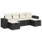 Salon de jardin 6 pcs avec coussins noir résine tresséeCet ensemble de canapés de jardin est le complément parfait de votre arrière-cour, terrasse ou patio, offrant un espace confortable et accueillant pour discuter avec la famille et les amis ou simplement se détendre et profiter de l'extérieur. Matériau durable : la résine tressée, également connue sous le nom de poly rotin, est un matériau synthétique solide et nécessitant peu d'entretien qui ressemble au rotin naturel. Elle est légère, facile à nettoyer et couramment utilisée pour les meubles d'extérieur en raison de sa durabilité et de ses propriétés de résistance aux intempéries.Fonction de rangement avec sac résistant à l'eau : le mobilier de jardin dispose d'un espace de rangement sous l'assise, complété par un sac résistant à l'eau pour ranger coussins, jouets et autres objets. Le sac intérieur peut être solidement fixé au mobilier d'extérieur grâce à des attaches auto-agrippantes pour plus de stabilité.Pouf polyvalent : le tabouret est polyvalent, servant de repose-pieds confortable lorsque vous vous prélassez sur le canapé ou de siège supplémentaire dans votre jardin.Housse amovible et lavable : ces coussins de siège sont dotés de housses amovibles pour un lavage et un entretien faciles.Conception modulaire : cet ensemble de meubles d'extérieur a une conception modulaire, ce qui le rend complètement flexible et facile à déplacer, afin que vous puissiez créer un agencement de meubles d'extérieur personnalisé. Bon à savoir :Pour que vos meubles d'extérieur restent beaux, nous vous recommandons de les protéger avec une housse imperméable.