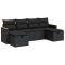 Salon de jardin 6 pcs avec coussins noir résine tresséeCet ensemble de canapés de jardin est le complément parfait de votre arrière-cour, terrasse ou patio, offrant un espace confortable et accueillant pour discuter avec la famille et les amis ou simplement se détendre et profiter de l'extérieur. Matériau durable : la résine tressée, également connue sous le nom de poly rotin, est un matériau synthétique solide et nécessitant peu d'entretien qui ressemble au rotin naturel. Elle est légère, facile à nettoyer et couramment utilisée pour les meubles d'extérieur en raison de sa durabilité et de ses propriétés de résistance aux intempéries.Fonction de rangement avec sac résistant à l'eau : le mobilier de jardin dispose d'un espace de rangement sous l'assise, complété par un sac résistant à l'eau pour ranger coussins, jouets et autres objets. Le sac intérieur peut être solidement fixé au mobilier d'extérieur grâce à des attaches auto-agrippantes pour plus de stabilité.Pouf polyvalent : le tabouret est polyvalent, servant de repose-pieds confortable lorsque vous vous prélassez sur le canapé ou de siège supplémentaire dans votre jardin.Housse amovible et lavable : ces coussins de siège sont dotés de housses amovibles pour un lavage et un entretien faciles.Conception modulaire : cet ensemble de meubles d'extérieur a une conception modulaire, ce qui le rend complètement flexible et facile à déplacer, afin que vous puissiez créer un agencement de meubles d'extérieur personnalisé. Bon à savoir :Pour que vos meubles d'extérieur restent beaux, nous vous recommandons de les protéger avec une housse imperméable.