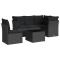 Salon de jardin 6 pcs avec coussins noir résine tresséeCet ensemble de canapés de jardin est le complément parfait de votre arrière-cour, terrasse ou patio, offrant un espace confortable et accueillant pour discuter avec la famille et les amis ou simplement se détendre et profiter de l'extérieur. Matériau durable : la résine tressée, également connue sous le nom de poly rotin, est un matériau synthétique solide et nécessitant peu d'entretien qui ressemble au rotin naturel. Il est léger, facile à nettoyer et couramment utilisé pour les meubles d'extérieur en raison de sa durabilité et de ses propriétés de résistance aux intempéries.Fonction de rangement avec sac résistant à l'eau : chaque siège de jardin dispose d'un espace de rangement sous l'assise, complété par un sac résistant à l'eau pour ranger les coussins, les jouets et d'autres objets. Les sacs intérieurs sont dotés d'un couvercle et peuvent être solidement fixés aux sièges à l'aide de bandes auto-agrippantes pour plus de stabilité.Dessus en verre : le dessus de la table d'extérieur est fabriqué en verre trempé solide et durable, ce qui le rend facile à nettoyer avec un chiffon humide et ajoute une touche d'élégance à votre espace extérieur.Housse amovible et lavable : ces coussins de siège sont dotés de housses amovibles pour un lavage et un entretien faciles.Conception modulaire : cet ensemble de meubles d'extérieur a une conception modulaire, ce qui le rend complètement flexible et facile à déplacer, afin que vous puissiez créer un agencement de meubles d'extérieur personnalisé. Bon à savoir :Pour que vos meubles d'extérieur restent beaux, nous vous recommandons de les protéger avec une housse imperméable.