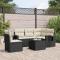 Salon de jardin 6 pcs avec coussins noir résine tresséeCet ensemble de canapés de jardin est le complément parfait de votre arrière-cour, terrasse ou patio, offrant un espace confortable et accueillant pour discuter avec la famille et les amis ou simplement se détendre et profiter de l'extérieur. Matériau durable : la résine tressée, également connue sous le nom de poly rotin, est un matériau synthétique solide et nécessitant peu d'entretien qui ressemble au rotin naturel. Il est léger, facile à nettoyer et couramment utilisé pour les meubles d'extérieur en raison de sa durabilité et de ses propriétés de résistance aux intempéries.Dessus en verre : le dessus de la table d'extérieur est fabriqué en verre trempé solide et durable, ce qui le rend facile à nettoyer avec un chiffon humide et ajoute une touche d'élégance à votre espace extérieur. Table d'appoint pratique : ce mobilier d'extérieur comprend des tables d'appoint pliables avec un ressort à gaz sur les accoudoirs, offrant des endroits pratiques pour garder vos essentiels à portée de main. Expérience d'assise confortable : ce mobilier d'extérieur, doté de coussins épais, offre une expérience d'assise confortable.Conception modulaire : cet ensemble de meubles d'extérieur a une conception modulaire, ce qui le rend complètement flexible et facile à déplacer, afin que vous puissiez créer un agencement de meubles d'extérieur personnalisé. Bon à savoir :Pour que vos meubles d'extérieur restent beaux, nous vous recommandons de les protéger avec une housse imperméable.