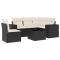 Salon de jardin 6 pcs avec coussins noir résine tresséeCet ensemble de canapés de jardin est le complément parfait de votre arrière-cour, terrasse ou patio, offrant un espace confortable et accueillant pour discuter avec la famille et les amis ou simplement se détendre et profiter de l'extérieur. Matériau durable : la résine tressée, également connue sous le nom de poly rotin, est un matériau synthétique solide et nécessitant peu d'entretien qui ressemble au rotin naturel. Il est léger, facile à nettoyer et couramment utilisé pour les meubles d'extérieur en raison de sa durabilité et de ses propriétés de résistance aux intempéries.Fonction de rangement avec sac résistant à l'eau : le mobilier de jardin dispose d'un espace de rangement sous l'assise, complété par un sac résistant à l'eau pour ranger coussins, jouets et autres objets. Le sac intérieur peut être solidement fixé au mobilier d'extérieur grâce à des attaches auto-agrippantes pour plus de stabilité.Dessus en verre : le dessus de la table d'extérieur est fabriqué en verre trempé solide et durable, ce qui le rend facile à nettoyer avec un chiffon humide et ajoute une touche d'élégance à votre espace extérieur.Housse amovible et lavable : ces coussins de siège sont dotés de housses amovibles pour un lavage et un entretien faciles.Conception modulaire : cet ensemble de meubles d'extérieur a une conception modulaire, ce qui le rend complètement flexible et facile à déplacer, afin que vous puissiez créer un agencement de meubles d'extérieur personnalisé. Bon à savoir :Pour que vos meubles d'extérieur restent beaux, nous vous recommandons de les protéger avec une housse imperméable.