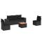 Salon de jardin 6 pcs avec coussins noir résine tresséeCet ensemble de canapés de jardin est le complément parfait de votre arrière-cour, terrasse ou patio, offrant un espace confortable et accueillant pour discuter avec la famille et les amis ou simplement se détendre et profiter de l'extérieur. Matériau durable : la résine tressée, également connue sous le nom de poly rotin, est un matériau synthétique solide et nécessitant peu d'entretien qui ressemble au rotin naturel. Il est léger, facile à nettoyer et couramment utilisé pour les meubles d'extérieur en raison de sa durabilité et de ses propriétés de résistance aux intempéries. Fonction de rangement avec sac résistant à l'eau : chaque siège de jardin dispose d'un espace de rangement sous l'assise, complété par un sac résistant à l'eau pour ranger les coussins, les jouets et d'autres objets. Les sacs intérieurs sont dotés d'un couvercle et peuvent être solidement fixés aux sièges à l'aide de bandes auto-agrippantes pour plus de stabilité. Dessus stable et facile à nettoyer : cette table de jardin a un dessus en bois d'acacia robuste, durable et facile à nettoyer avec un chiffon humide. Expérience d'assise confortable : ce mobilier d'extérieur, doté de coussins épais, offre une expérience d'assise confortable. Conception modulaire : cet ensemble de meubles d'extérieur a une conception modulaire, ce qui le rend complètement flexible et facile à déplacer, afin que vous puissiez créer un agencement de meubles d'extérieur personnalisé. Bon à savoir :Pour que vos meubles d'extérieur restent beaux, nous vous recommandons de les protéger avec une housse imperméable.