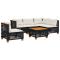 Salon de jardin 6 pcs avec coussins noir résine tresséeCet ensemble de canapés de jardin est le complément parfait de votre arrière-cour, terrasse ou patio, offrant un espace confortable et accueillant pour discuter avec la famille et les amis ou simplement se détendre et profiter de l'extérieur. Matériau durable : la résine tressée, également connue sous le nom de poly rotin, est un matériau synthétique solide et nécessitant peu d'entretien qui ressemble au rotin naturel. Il est léger, facile à nettoyer et couramment utilisé pour les meubles d'extérieur en raison de sa durabilité et de ses propriétés de résistance aux intempéries. Expérience d'assise confortable : ce mobilier d'extérieur, doté de coussins épais, offre une expérience d'assise confortable. Housse amovible et lavable : ces coussins de siège sont dotés de housses amovibles pour un lavage et un entretien faciles. Dessus stable et facile à nettoyer : cette table de jardin a un dessus en bois d'acacia robuste, durable et facile à nettoyer avec un chiffon humide. Conception modulaire : cet ensemble de meubles d'extérieur a une conception modulaire, ce qui le rend complètement flexible et facile à déplacer, afin que vous puissiez créer un agencement de meubles d'extérieur personnalisé. Bon à savoir : Pour que vos meubles d'extérieur restent beaux, nous vous recommandons de les protéger avec une housse imperméable. Maximum 110 kg par siège. Soyez conscient du risque de feu ouvert et d'autres sources de forte chaleur à proximité de l'appareil.