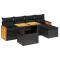 Salon de jardin 6 pcs avec coussins noir résine tresséeCet ensemble de canapés de jardin est le complément parfait de votre arrière-cour, terrasse ou patio, offrant un espace confortable et accueillant pour discuter avec la famille et les amis ou simplement se détendre et profiter de l'extérieur. Matériau durable : la résine tressée, également connue sous le nom de poly rotin, est un matériau synthétique solide et nécessitant peu d'entretien qui ressemble au rotin naturel. Il est léger, facile à nettoyer et couramment utilisé pour les meubles d'extérieur en raison de sa durabilité et de ses propriétés de résistance aux intempéries. Dessus de table réglable : le dessus de table peut être soulevé pour rendre la table plus haute, ce qui transforme la table d'extérieur d'une table basse à une table de salle à manger. Elle est parfaite pour recevoir des invités ou prendre des repas à l'extérieur. Housse amovible et lavable : ces coussins de siège sont dotés de housses amovibles pour un lavage et un entretien faciles. Conception modulaire : cet ensemble de meubles d'extérieur a une conception modulaire, ce qui le rend complètement flexible et facile à déplacer, afin que vous puissiez créer un agencement de meubles d'extérieur personnalisé. Bon à savoir : Pour que vos meubles d'extérieur restent beaux, nous vous recommandons de les protéger avec une housse imperméable.