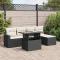 Salon de jardin 6 pcs avec coussins noir résine tresséeCet ensemble de canapés de jardin est le complément parfait de votre arrière-cour, terrasse ou patio, offrant un espace confortable et accueillant pour discuter avec la famille et les amis ou simplement se détendre et profiter de l'extérieur. Matériau durable : la résine tressée, également connue sous le nom de poly rotin, est un matériau synthétique solide et nécessitant peu d'entretien qui ressemble au rotin naturel. Elle est légère, facile à nettoyer et couramment utilisée pour les meubles d'extérieur en raison de sa durabilité et de ses propriétés de résistance aux intempéries. Fonction de rangement avec sac résistant à l'eau : chaque siège de jardin dispose d'un espace de rangement sous l'assise, complété par un sac résistant à l'eau pour ranger les coussins, les jouets et d'autres objets. Le sac intérieur est doté d'un couvercle et peut être solidement fixé au siège à l'aide de bandes auto-agrippantes pour plus de stabilité. Dessus de table réglable : le dessus de table peut être soulevé pour rendre la table plus haute, ce qui transforme la table d'extérieur d'une table basse à une table de salle à manger. Elle est parfaite pour recevoir des invités ou prendre des repas à l'extérieur. Pouf polyvalent : le tabouret est polyvalent, servant de repose-pieds confortable lorsque vous vous prélassez sur le canapé ou de siège supplémentaire dans votre jardin. Housse amovible et lavable : ces coussins de siège sont dotés de housses amovibles pour un lavage et un entretien faciles. Cadre robuste et stable : le cadre en acier enduit de poudre est solide, stable, durable et résistant à la corrosion et aux intempéries, ce qui garantit des performances durables. Bon à savoir : Pour que vos meubles d'extérieur restent beaux, nous vous recommandons de les protéger avec une housse imperméable.