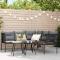 Salon de jardin 6 pcs avec coussins noir résine tresséeCet ensemble de canapés de jardin est le complément parfait de votre arrière-cour, terrasse ou patio, offrant un espace confortable et accueillant pour discuter avec la famille et les amis ou simplement se détendre et profiter de l'extérieur. Matériau durable : la résine tressée, également connue sous le nom de poly rotin, est un matériau synthétique solide et nécessitant peu d'entretien qui ressemble au rotin naturel. Elle est légère, facile à nettoyer et couramment utilisée pour les meubles d'extérieur en raison de sa durabilité et de ses propriétés de résistance aux intempéries. Fonction de rangement avec sac résistant à l'eau : chaque siège de jardin dispose d'un espace de rangement sous l'assise, complété par un sac résistant à l'eau pour ranger les coussins, les jouets et d'autres objets. Le sac intérieur est doté d'un couvercle et peut être solidement fixé au siège à l'aide de bandes auto-agrippantes pour plus de stabilité. Dessus de table réglable : le dessus de table peut être soulevé pour rendre la table plus haute, ce qui transforme la table d'extérieur d'une table basse à une table de salle à manger. Elle est parfaite pour recevoir des invités ou prendre des repas à l'extérieur. Housse amovible et lavable : ces coussins de siège sont dotés de housses amovibles pour un lavage et un entretien faciles. Cadre robuste et stable : le cadre en acier enduit de poudre est solide, stable, durable et résistant à la corrosion et aux intempéries, ce qui garantit des performances durables. Bon à savoir : Pour que vos meubles d'extérieur restent beaux, nous vous recommandons de les protéger avec une housse imperméable. ,