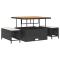 Salon de jardin 6 pcs avec coussins noir résine tresséeCet ensemble de canapés de jardin est le complément parfait de votre arrière-cour, terrasse ou patio, offrant un espace confortable et accueillant pour discuter avec la famille et les amis ou simplement se détendre et profiter de l'extérieur. Matériau durable : la résine tressée, également connue sous le nom de poly rotin, est un matériau synthétique solide et nécessitant peu d'entretien qui ressemble au rotin naturel. Elle est légère, facile à nettoyer et couramment utilisée pour les meubles d'extérieur en raison de sa durabilité et de ses propriétés de résistance aux intempéries. Fonction de rangement avec sac résistant à l'eau : chaque siège de jardin dispose d'un espace de rangement sous l'assise, complété par un sac résistant à l'eau pour ranger les coussins, les jouets et d'autres objets. Le sac intérieur est doté d'un couvercle et peut être solidement fixé au siège à l'aide de bandes auto-agrippantes pour plus de stabilité. Dessus de table réglable : le dessus de table peut être soulevé pour rendre la table plus haute, ce qui transforme la table d'extérieur d'une table basse à une table de salle à manger. Elle est parfaite pour recevoir des invités ou prendre des repas à l'extérieur. Pouf polyvalent : le tabouret est polyvalent, servant de repose-pieds confortable lorsque vous vous prélassez sur le canapé ou de siège supplémentaire dans votre jardin. Housse amovible et lavable : ces coussins de siège sont dotés de housses amovibles pour un lavage et un entretien faciles. Cadre robuste et stable : le cadre en acier enduit de poudre est solide, stable, durable et résistant à la corrosion et aux intempéries, ce qui garantit des performances durables. Bon à savoir : Pour que vos meubles d'extérieur restent beaux, nous vous recommandons de les protéger avec une housse imperméable. ,