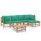 Salon de jardin 6 pcs avec coussins vert bambouSavourez une tasse de café ou de thé par beau temps dans votre espace extérieur avec cet élégant ensemble de salon de jardin en bambou ! Matériau durable : le bambou est connu pour sa flexibilité et sa dureté. Les meubles en bambou sont une bonne option lorsque vous voulez des meubles d'extérieur solides fabriqués à partir de matériaux naturels.Expérience d'assise confortable : le dossier et l'accoudoir ajoutent un confort d'assise supplémentaire pour l'ensemble de canapé de jardin. De plus, les coussins d'assise et de dossier moelleux offrent un confort pendant votre temps d'assise.Table pratique : la table robuste est parfaite pour placer des repas, des boissons et d'autres objets décoratifs.Conception modulaire : l'ensemble de salon est flexible et facile à déplacer, vous pouvez donc le combiner avec d'autres segments modulaires dans la boutique en ligne pour créer vos propres configurations d'ensemble de salon d'extérieur ! Remarque :Pour que vos meubles d'extérieur restent beaux, nous vous recommandons de les protéger avec une housse imperméable.Bon à savoir :Pour faciliter au maximum le montage, chaque produit est livré avec des instructions.