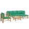 Salon de jardin 6 pcs avec coussins vert bambouSavourez une tasse de café ou de thé par beau temps dans votre espace extérieur avec cet élégant ensemble de salon de jardin en bambou ! Matériau durable : le bambou est connu pour sa flexibilité et sa dureté. Les meubles en bambou sont une bonne option lorsque vous voulez des meubles d'extérieur solides fabriqués à partir de matériaux naturels.Expérience d'assise confortable : le dossier et l'accoudoir ajoutent un confort d'assise supplémentaire pour l'ensemble de canapé de jardin. De plus, les coussins d'assise et de dossier moelleux offrent un confort pendant votre temps d'assise.Table pratique : la table robuste est parfaite pour placer des repas, des boissons et d'autres objets décoratifs.Conception modulaire : l'ensemble de salon est flexible et facile à déplacer, vous pouvez donc le combiner avec d'autres segments modulaires dans la boutique en ligne pour créer vos propres configurations d'ensemble de salon d'extérieur ! Remarque :Pour que vos meubles d'extérieur restent beaux, nous vous recommandons de les protéger avec une housse imperméable.Bon à savoir :Pour faciliter au maximum le montage, chaque produit est livré avec des instructions.
