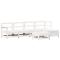 Salon de jardin 6 pcs blanc bois de pin massifCet ensemble de salon de jardin en bois avec un design à lattes sera un excellent complément à votre jardin, patio ou terrasse pour profiter d'un moment agréable avec votre famille ou vos amis. Matériau robuste et durable : le bois de pin massif est connu pour sa résistance et sa durabilité. Ses grains droits et ses noeuds distinctifs contribuent à son charme rustique. Bien ventilé et prévention de l'accumulation d'eau : la conception à lattes favorise une circulation optimale de l'air et empêche efficacement l'accumulation d'eau, assurant ainsi une assise sèche et confortable. Utilisation polyvalente : le repose-pied de jardin peut non seulement être utilisé pour s'asseoir ou se détendre, mais il peut également être utilisé comme table basse pour contenir vos boissons, votre nourriture et d'autres décorations. Conception modulaire : cet ensemble de meubles d'extérieur a une conception modulaire, ce qui le rend complètement flexible et facile à déplacer, afin que vous puissiez créer un agencement de meubles d'extérieur personnalisé. Bon à savoir :Pour que vos meubles d'extérieur restent beaux, nous vous recommandons de les protéger avec une housse imperméable. Maximum 110 kg par siège.