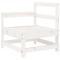 Salon de jardin 6 pcs blanc bois de pin massifCet ensemble de salon de jardin en bois avec un design à lattes sera un excellent complément à votre jardin, patio ou terrasse pour profiter d'un moment agréable avec votre famille ou vos amis. Matériau robuste et durable : le bois de pin massif est connu pour sa résistance et sa durabilité. Ses grains droits et ses noeuds distinctifs contribuent à son charme rustique. Bien ventilé et prévention de l'accumulation d'eau : la conception à lattes favorise une circulation optimale de l'air et empêche efficacement l'accumulation d'eau, assurant ainsi une assise sèche et confortable. Utilisation polyvalente : le repose-pied de jardin peut non seulement être utilisé pour s'asseoir ou se détendre, mais il peut également être utilisé comme table basse pour contenir vos boissons, votre nourriture et d'autres décorations. Conception modulaire : cet ensemble de meubles d'extérieur a une conception modulaire, ce qui le rend complètement flexible et facile à déplacer, afin que vous puissiez créer un agencement de meubles d'extérieur personnalisé. Bon à savoir : Pour que vos meubles d'extérieur restent beaux, nous vous recommandons de les protéger avec une housse imperméable. Maximum 110 kg par siège.