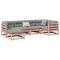 Salon de jardin 6 pcs bois massif sapin de douglasCet ensemble de canapés de jardin est le complément parfait de votre arrière-cour, terrasse ou patio, offrant un espace confortable et accueillant pour discuter avec la famille et les amis ou simplement se détendre et profiter de l'extérieur. Matériau robuste et durable : le bois de sapin de douglas est connu pour sa résistance et sa durabilité. Sa couleur brun rougeâtre riche et ses grains uniques dégagent une ambiance chaleureuse et naturelle. Sa stabilité et sa résistance aux intempéries sont idéales pour la fabrication de meubles d'intérieur et d'extérieur.Bien ventilé et prévention de l'accumulation d'eau : la conception à lattes favorise une circulation optimale de l'air et empêche efficacement l'accumulation d'eau, assurant ainsi une assise sèche et confortable.Conception modulaire : cet ensemble de meubles d'extérieur a une conception modulaire, ce qui le rend complètement flexible et facile à déplacer, afin que vous puissiez créer un agencement de meubles d'extérieur personnalisé. Bon à savoir :Pour que vos meubles d'extérieur restent beaux, nous vous recommandons de les protéger avec une housse imperméable. Maximum 110 kg par siège.