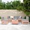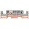 Salon de jardin 6 pcs bois massif sapin de douglasCet ensemble de salon de jardin en bois avec un design à lattes sera un excellent complément à votre jardin, patio ou terrasse pour profiter d'un moment agréable avec votre famille ou vos amis. Matériau robuste et durable : le bois de sapin de douglas est connu pour sa résistance et sa durabilité. Sa couleur brun rougeâtre riche et ses grains uniques dégagent une ambiance chaleureuse et naturelle. Sa stabilité et sa résistance aux intempéries sont idéales pour la fabrication de meubles d'intérieur et d'extérieur. Bien ventilé et prévention de l'accumulation d'eau : la conception à lattes favorise une circulation optimale de l'air et empêche efficacement l'accumulation d'eau, assurant ainsi une assise sèche et confortable. Utilisation polyvalente : le repose-pied de jardin peut non seulement être utilisé pour s'asseoir ou se détendre, mais il peut également être utilisé comme table basse pour contenir vos boissons, votre nourriture et d'autres décorations. Conception modulaire : cet ensemble de meubles d'extérieur a une conception modulaire, ce qui le rend complètement flexible et facile à déplacer, afin que vous puissiez créer un agencement de meubles d'extérieur personnalisé. Bon à savoir : Pour que vos meubles d'extérieur restent beaux, nous vous recommandons de les protéger avec une housse imperméable. Maximum 110 kg par siège.