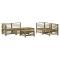 Salon de jardin 6 pcs bois de pin imprégnéCe salon de jardin en bois, qui se démarque par son design à lattes, sera un excellent supplément à votre jardin, patio ou terrasse pour profiter d'un moment agréable avec votre famille ou vos amis. Bois imprégné : le bois de pin massif est un matériau naturel magnifique. Le bois de pin a un grain droit et les noeuds lui confèrent un aspect rustique caractéristique. L'imprégnation est un processus de conservation réalisé à l'aide d'autoclaves. Le traitement sous pression augmente la résistance à la pourriture et aux intempéries.Cadre robuste et stable : les cadres en bois rendent l'ensemble de salon robuste et stable pour une utilisation quotidienne à l'extérieur.Design modulaire : le canapé est flexible et facile à déplacer. Vous pouvez le combiner avec d'autres segments modulaires de la boutique en ligne pour créer vos propres configurations de salon de jardin ! Bon à savoir :Pour que vos meubles d'extérieur restent beaux, nous vous recommandons de les protéger avec une housse imperméable.Les coussins ne sont pas inclus dans la livraison. Maximum 110 kg par siège.