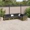 Salon de jardin 6 pcs bois de pin imprégnéCet ensemble de canapés de jardin est le complément parfait de votre arrière-cour, terrasse ou patio, offrant un espace confortable et accueillant pour discuter avec la famille et les amis ou simplement se détendre et profiter de l'extérieur. Matériau robuste et durable : le bois de pin massif est connu pour sa résistance et sa durabilité. Ses grains droits et ses noeuds distinctifs contribuent à son charme rustique. Il a été imprégné avec une solution de conservation et a subi un traitement en autoclave, ce qui renforce sa résistance à la pourriture et aux intempéries.Bien ventilé et prévention de l'accumulation d'eau : la conception à lattes favorise une circulation optimale de l'air et empêche efficacement l'accumulation d'eau, assurant ainsi une assise sèche et confortable.Conception modulaire : cet ensemble de meubles d'extérieur a une conception modulaire, ce qui le rend complètement flexible et facile à déplacer, afin que vous puissiez créer un agencement de meubles d'extérieur personnalisé. Bon à savoir :Pour que vos meubles d'extérieur restent beaux, nous vous recommandons de les protéger avec une housse imperméable. Maximum 110 kg par siège.