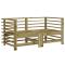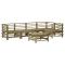 Salon de jardin 6 pcs bois de pin imprégnéCe salon de jardin en bois, qui se démarque par son design à lattes, sera un excellent supplément à votre jardin, patio ou terrasse pour profiter d'un moment agréable avec votre famille ou vos amis. Bois imprégné : le bois de pin massif est un matériau naturel magnifique. Le bois de pin a un grain droit et les noeuds lui confèrent un aspect rustique caractéristique. L'imprégnation est un processus de conservation réalisé à l'aide d'autoclaves. Le traitement sous pression augmente la résistance à la pourriture et aux intempéries.Cadre robuste et stable : les cadres en bois rendent l'ensemble de salon robuste et stable pour une utilisation quotidienne à l'extérieur.Design modulaire : le canapé est flexible et facile à déplacer. Vous pouvez le combiner avec d'autres segments modulaires de la boutique en ligne pour créer vos propres configurations de salon de jardin ! Bon à savoir :Pour que vos meubles d'extérieur restent beaux, nous vous recommandons de les protéger avec une housse imperméable.Les coussins ne sont pas inclus dans la livraison. Maximum 110 kg par siège.
