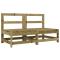 Salon de jardin 6 pcs bois de pin imprégnéCe salon de jardin en bois, qui se démarque par son design à lattes, sera un excellent supplément à votre jardin, patio ou terrasse pour profiter d'un moment agréable avec votre famille ou vos amis. Bois imprégné : le bois de pin massif est un matériau naturel magnifique. Le bois de pin a un grain droit et les noeuds lui confèrent un aspect rustique caractéristique. L'imprégnation est un processus de conservation réalisé à l'aide d'autoclaves. Le traitement sous pression augmente la résistance à la pourriture et aux intempéries.Expérience d'assise confortable : le dossier ajoute un confort d'assise supplémentaire au canapé d'extérieur.Design modulaire : le canapé est flexible et facile à déplacer. Vous pouvez le combiner avec d'autres segments modulaires de la boutique en ligne pour créer vos propres configurations de salon de jardin ! Bon à savoir :Pour que vos meubles d'extérieur restent beaux, nous vous recommandons de les protéger avec une housse imperméable.Les coussins ne sont pas inclus dans la livraison. Maximum 110 kg par siège.