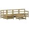 Salon de jardin 6 pcs bois de pin imprégnéCet ensemble de salon de jardin en bois avec un design à lattes sera un excellent complément à votre jardin, patio ou terrasse pour profiter d'un moment agréable avec votre famille ou vos amis. Matériau robuste et durable : le bois de pin massif est connu pour sa résistance et sa durabilité. Ses grains droits et ses noeuds distinctifs contribuent à son charme rustique. Il a été imprégné avec une solution de conservation et a subi un traitement en autoclave, ce qui renforce sa résistance à la pourriture et aux intempéries. Bien ventilé et prévention de l'accumulation d'eau : la conception à lattes favorise une circulation optimale de l'air et empêche efficacement l'accumulation d'eau, assurant ainsi une assise sèche et confortable. Utilisation polyvalente : le repose-pied de jardin peut non seulement être utilisé pour s'asseoir ou se détendre, mais il peut également être utilisé comme table basse pour contenir vos boissons, votre nourriture et d'autres décorations. Conception modulaire : cet ensemble de meubles d'extérieur a une conception modulaire, ce qui le rend complètement flexible et facile à déplacer, afin que vous puissiez créer un agencement de meubles d'extérieur personnalisé. Bon à savoir :Pour que vos meubles d'extérieur restent beaux, nous vous recommandons de les protéger avec une housse imperméable. Maximum 110 kg par siège.
