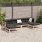 Salon de jardin 6 pcs bois de pin massifCet ensemble de canapés de jardin est le complément parfait de votre arrière-cour, terrasse ou patio, offrant un espace confortable et accueillant pour discuter avec la famille et les amis ou simplement se détendre et profiter de l'extérieur. Matériau robuste et durable : le bois de pin massif est connu pour sa résistance et sa durabilité. Ses grains droits et ses noeuds distinctifs contribuent à son charme rustique.Bien ventilé et prévention de l'accumulation d'eau : la conception à lattes favorise une circulation optimale de l'air et empêche efficacement l'accumulation d'eau, assurant ainsi une assise sèche et confortable.Conception modulaire : cet ensemble de meubles d'extérieur a une conception modulaire, ce qui le rend complètement flexible et facile à déplacer, afin que vous puissiez créer un agencement de meubles d'extérieur personnalisé. Bon à savoir :Pour que vos meubles d'extérieur restent beaux, nous vous recommandons de les protéger avec une housse imperméable. Maximum 110 kg par siège.