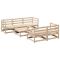 Salon de jardin 6 pcs bois de pin massifCet ensemble de canapés de jardin est le complément parfait de votre arrière-cour, terrasse ou patio, offrant un espace confortable et accueillant pour discuter avec la famille et les amis ou simplement se détendre et profiter de l'extérieur. Matériau robuste et durable : le bois de pin massif est connu pour sa résistance et sa durabilité. Ses grains droits et ses noeuds distinctifs contribuent à son charme rustique. Bien ventilé et prévention de l'accumulation d'eau : la conception à lattes favorise une circulation optimale de l'air et empêche efficacement l'accumulation d'eau, assurant ainsi une assise sèche et confortable. Conception modulaire : cet ensemble de meubles d'extérieur a une conception modulaire, ce qui le rend complètement flexible et facile à déplacer, afin que vous puissiez créer un agencement de meubles d'extérieur personnalisé. Bon à savoir :Pour que vos meubles d'extérieur restent beaux, nous vous recommandons de les protéger avec une housse imperméable. Maximum 110 kg par siège.